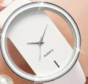 - White Band Quartz Watch - Silver tome facing w/ clear glass, no numbers on watch.